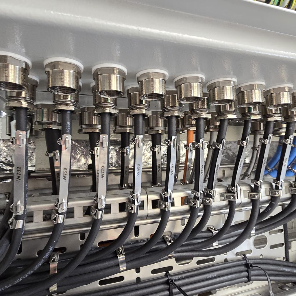 cable tracks/trays, flat bars, angles, cable ties, cable glands, cables