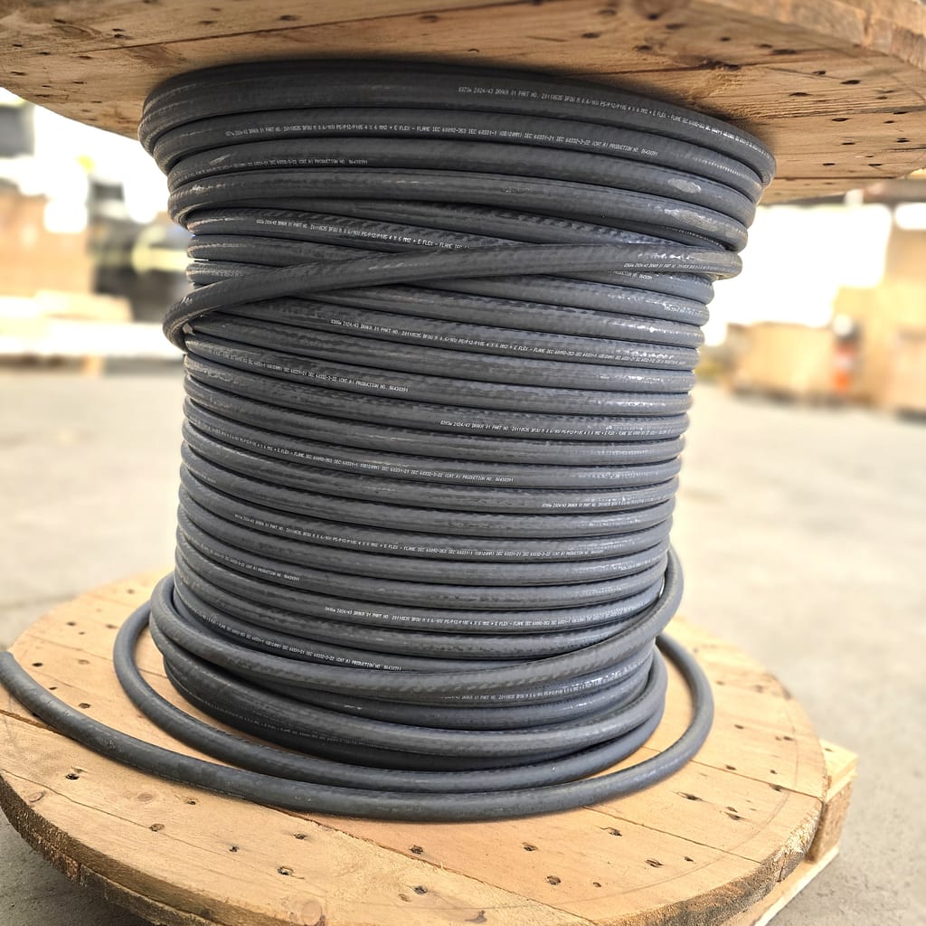 We are able to produce hydraulic hoses according to your specifications. As a standard, we use hoses and fittings from brands like Alfagomma, Parker, Manuli, and Gates. Additionally, we offer engraving on stainless steel marker plates for cables and hoses.
